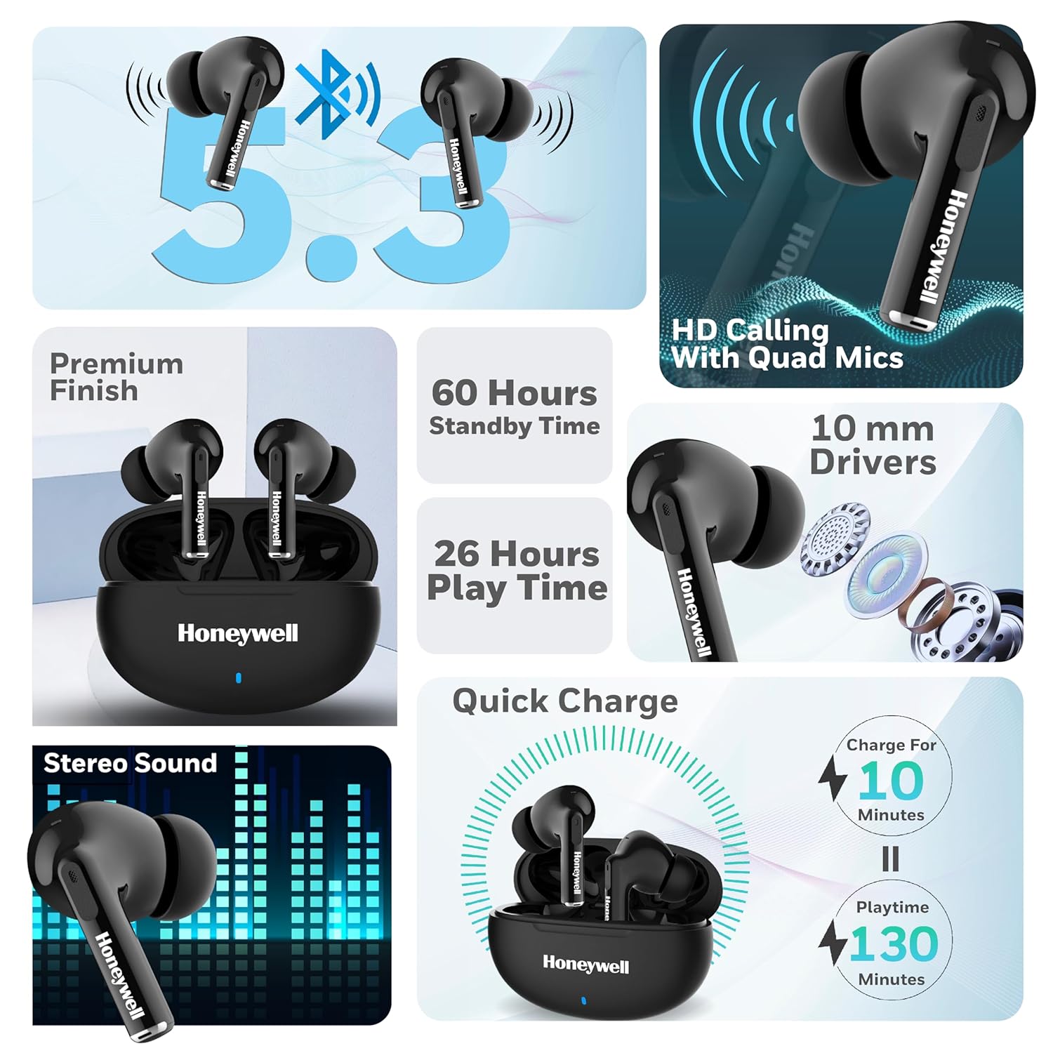 Honeywell Moxie V1200 Earbuds (BLACK)