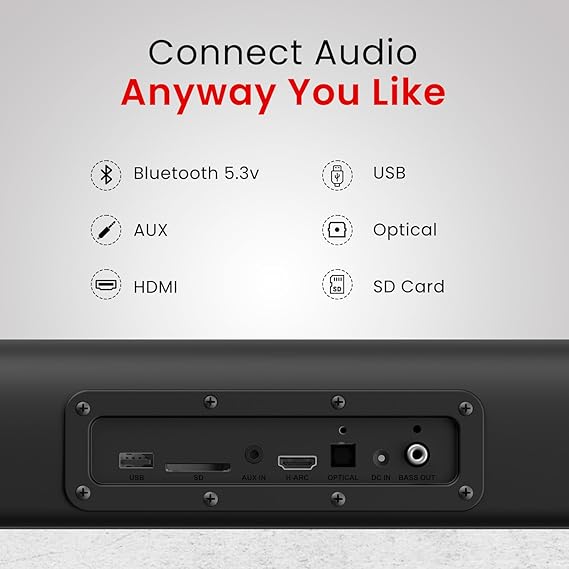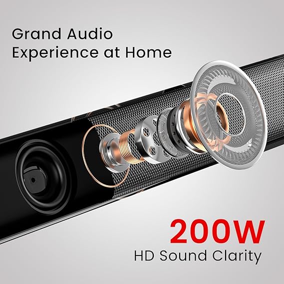 Portronics Pure Sound 105 | 200W Bluetooth Soundbar with Wired Subwoofer for Deep Bass, 2.1 Channel Home Theatre, HD Sound,3 EQ Modes, BT 5.3V,HDMI, Optical, AUX, USB Port, Sleek Remote Control(Black)
