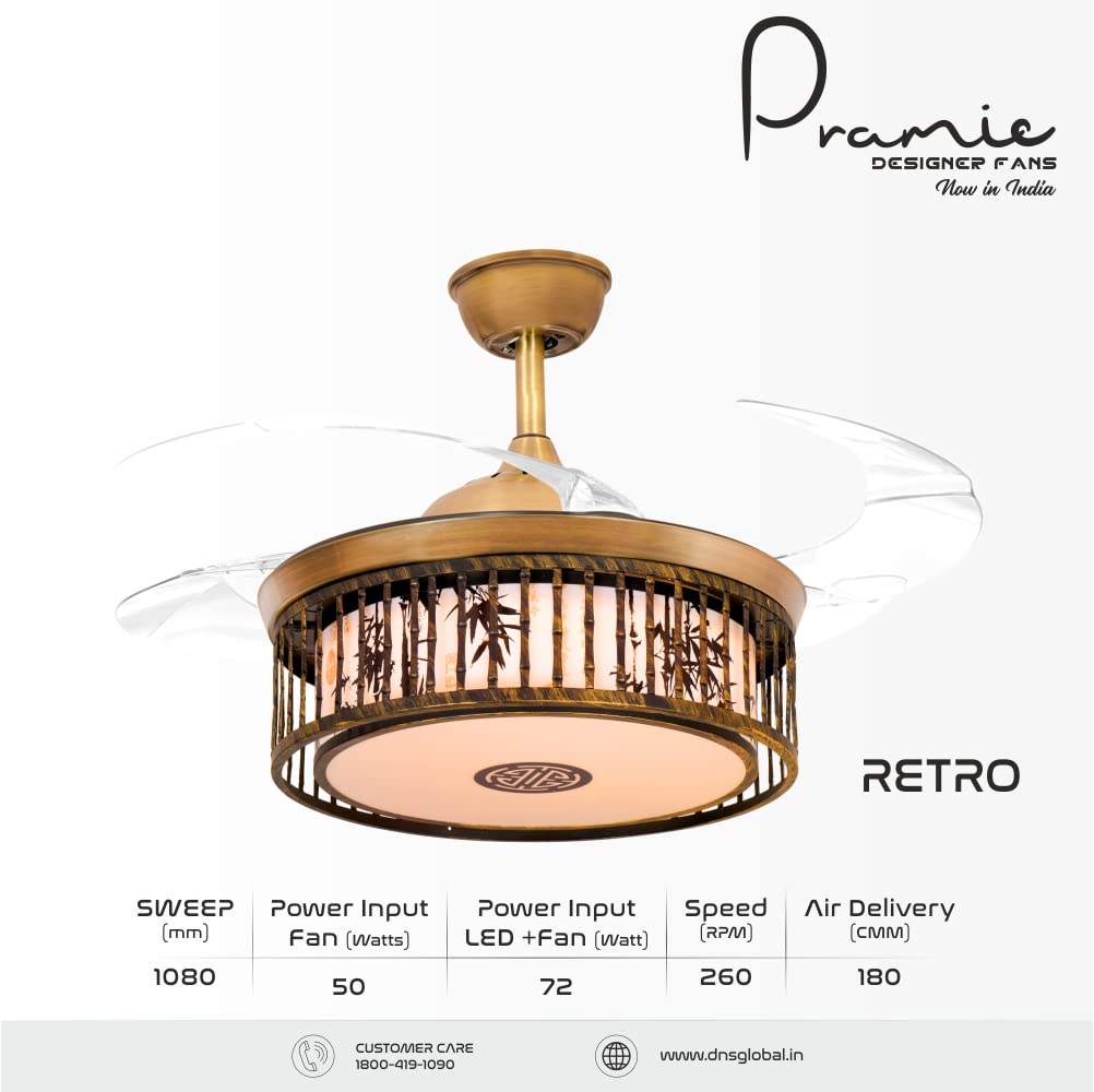 Pramie Retro Designer 1080mm Retractable Ceiling Fan